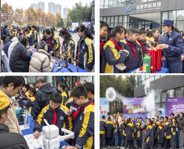 科普嘉年华活动丰富多彩,在外场科普集市,广大市民、中小学师生代表、科技志愿服务者、科技企业代表等,近距离观看无人机表演、体验“魔法科学秀”、参与3D打印、消防知识互动、“爱眼护眼”科普等。在内场展厅里,应急救护实操、科普小课堂轮番登场,机器狗技能展示、机器人编程创意体验等体验趣味十足。赤壁市学生代表的科创大赛获奖作品同步展出,集中展现了赤壁市科普工作的丰硕成效与青少年科创活力。
