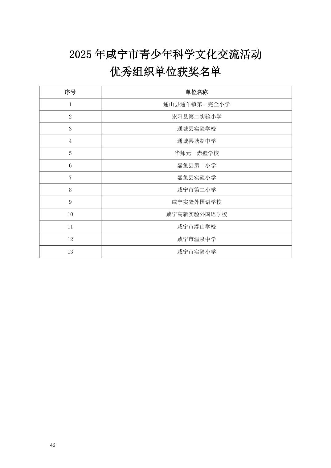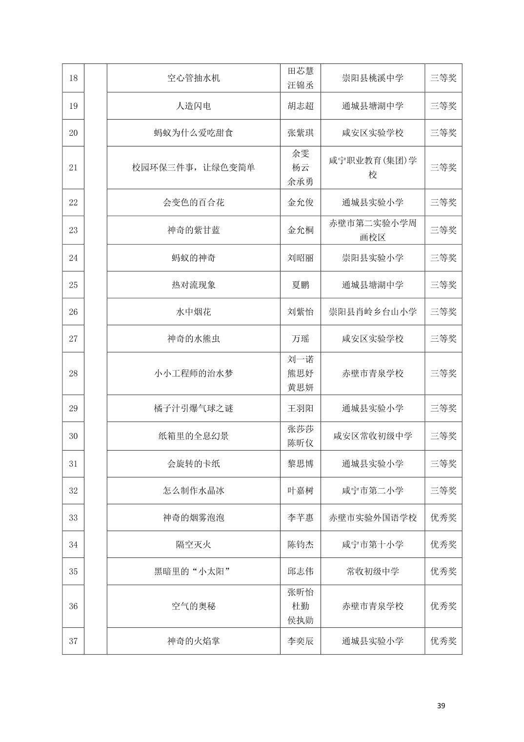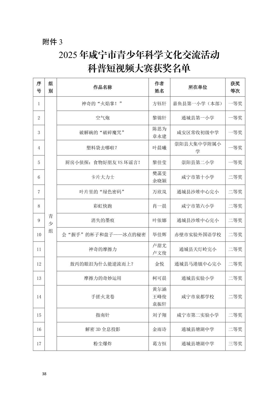 关于公布2025年咸宁市青少年科学文化交流活动青少年科学素养展示活动、青少年科技创新大赛、科普短视频大赛、优秀指导老师、优秀科技教师、优秀组织工作者、优秀组织单位获奖名单的通知