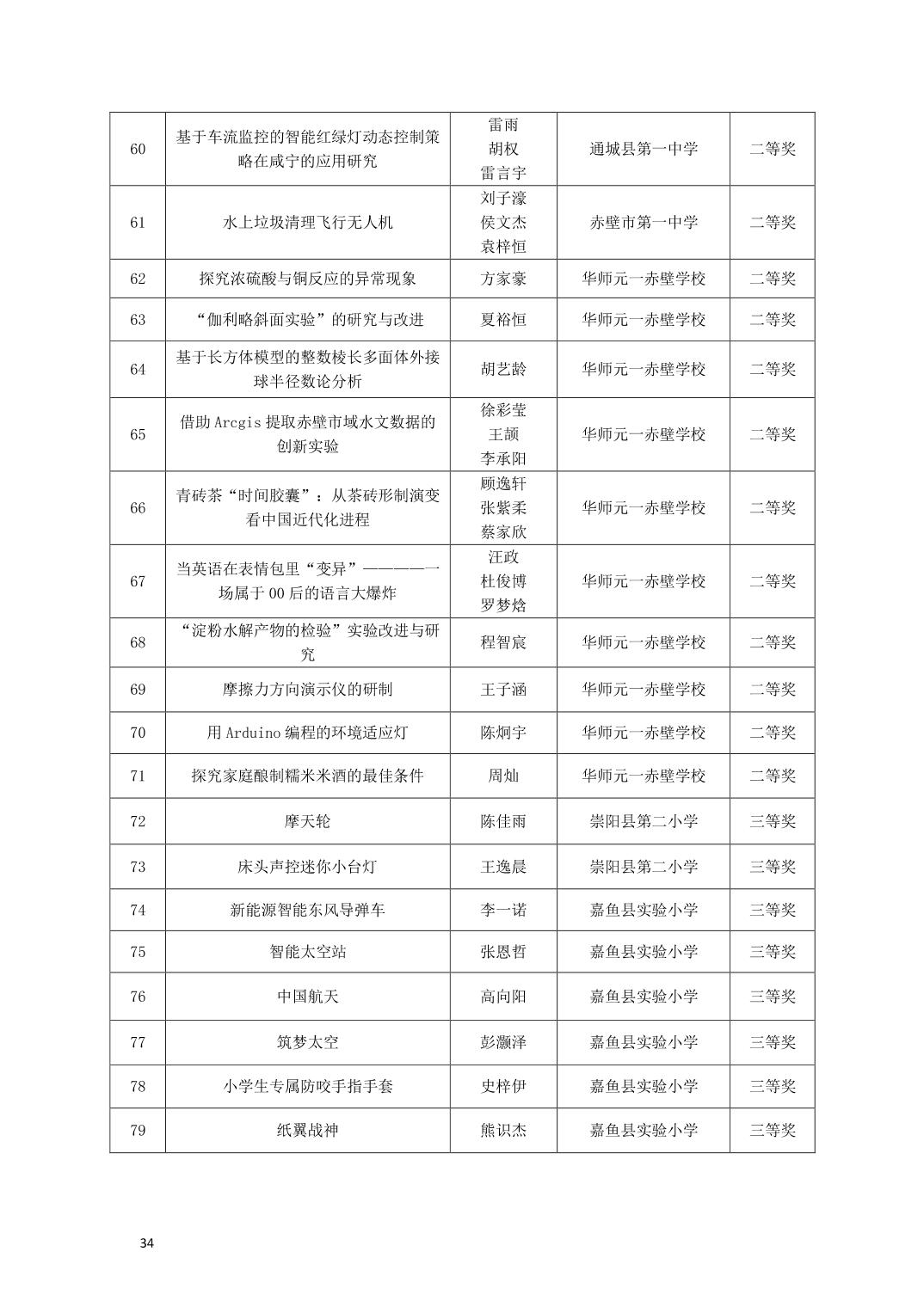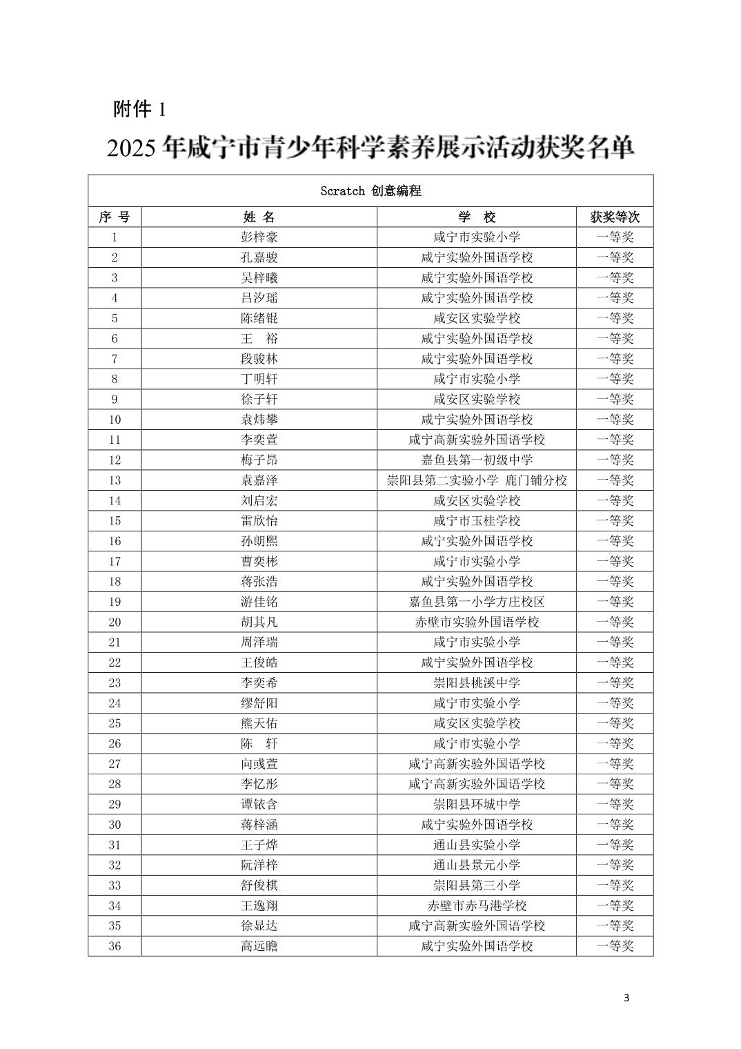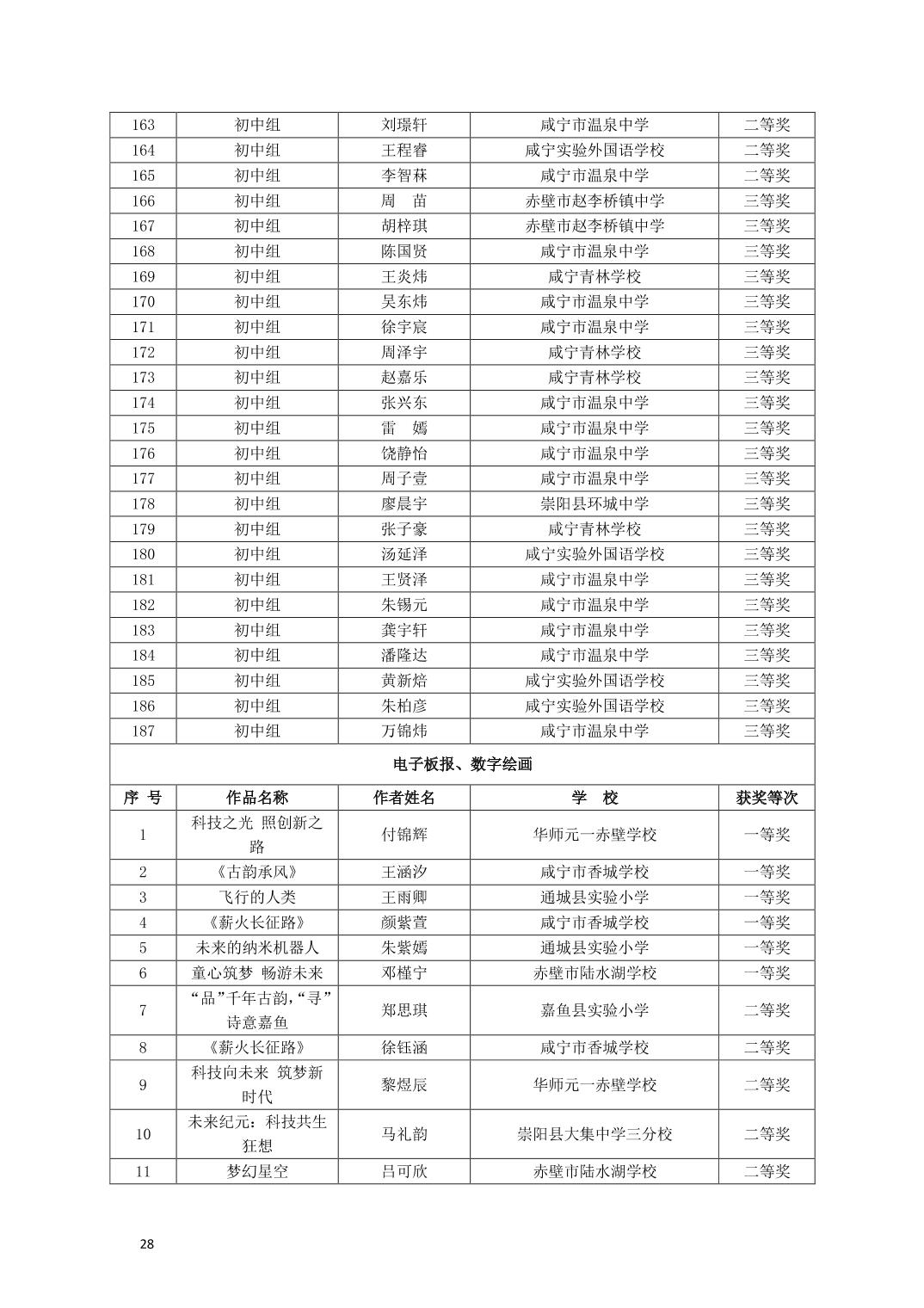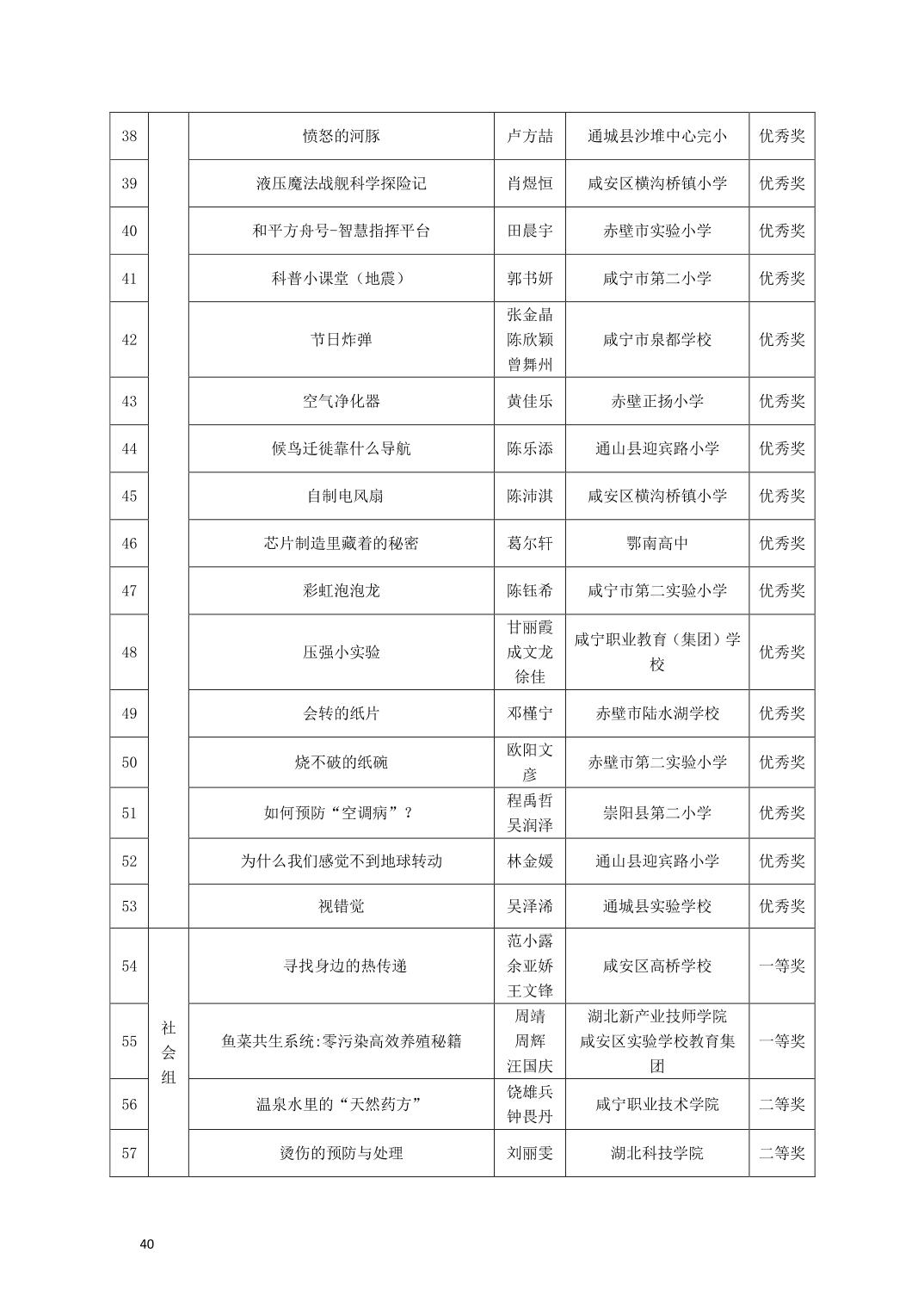 关于公布2025年咸宁市青少年科学文化交流活动青少年科学素养展示活动、青少年科技创新大赛、科普短视频大赛、优秀指导老师、优秀科技教师、优秀组织工作者、优秀组织单位获奖名单的通知